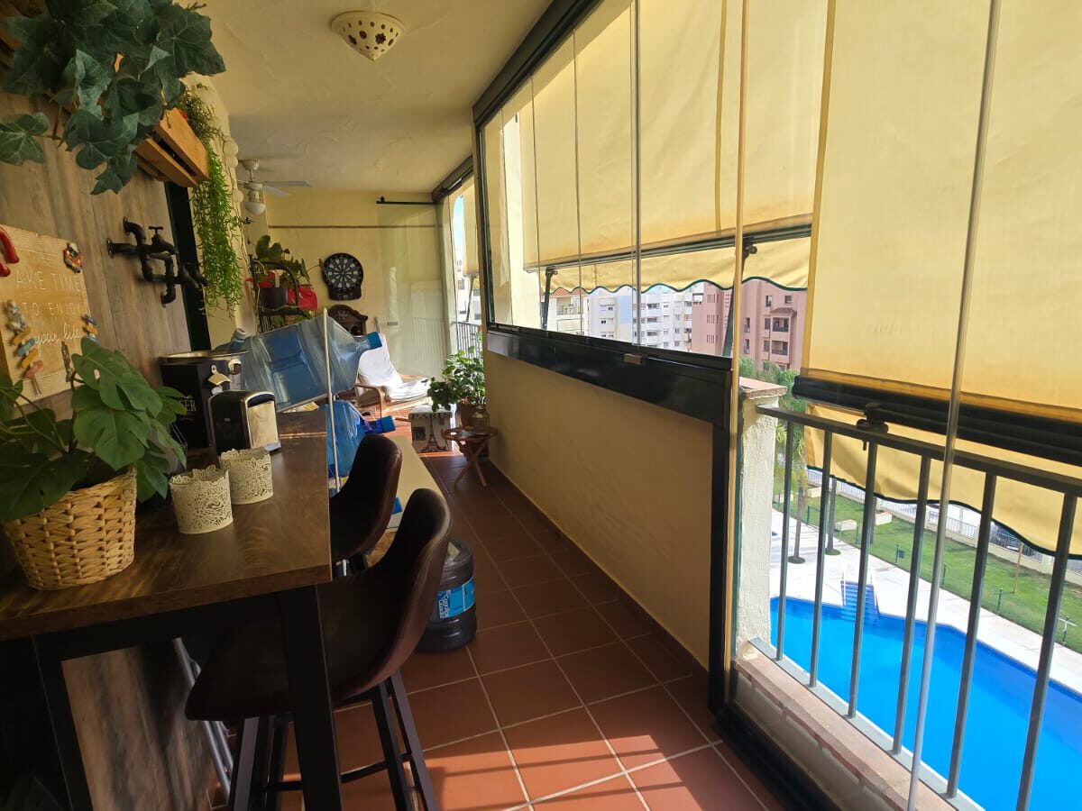 Si está buscando un piso amplio para alquiler de larga temporada en Benalmádena no deje pasar esta impresionante vivienda de 4 dormitorios, 2 baños uno en suite, amplio salón, cocina independiente con lavadero y enorme terraza cerrada con cortinas de cristal. Es piso se alquila totalmente equipado y amueblado. Aire acondicionado. Se alquila con plaza de garaje y trastero. Situado en urbanización cerrada con piscina, pista de pádel y zonas verdes. Frente al colegio Noruego y a un paso de la autovía. No se admiten mascotas. Imprescindible demostrar solvencia económica. DISPONIBLE A PARTIR DE FEBRERO DE 2026.