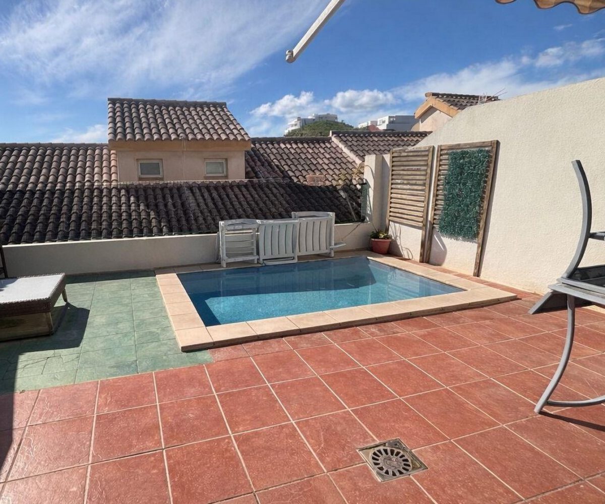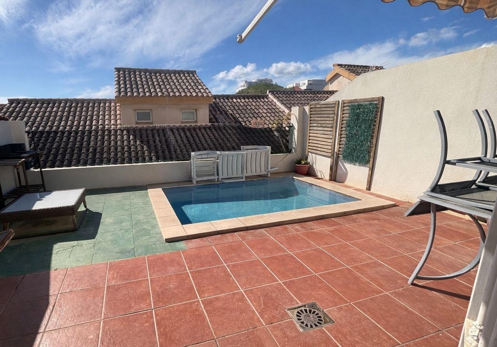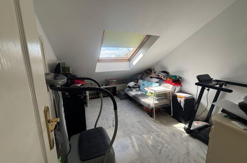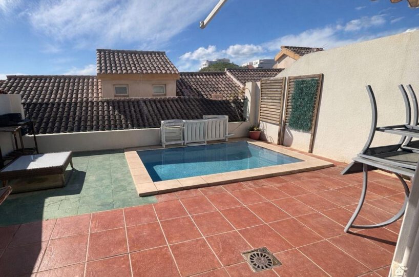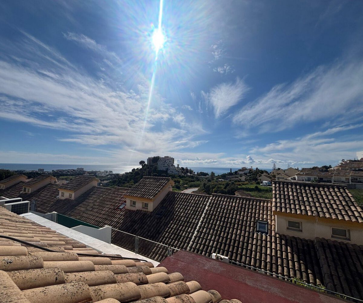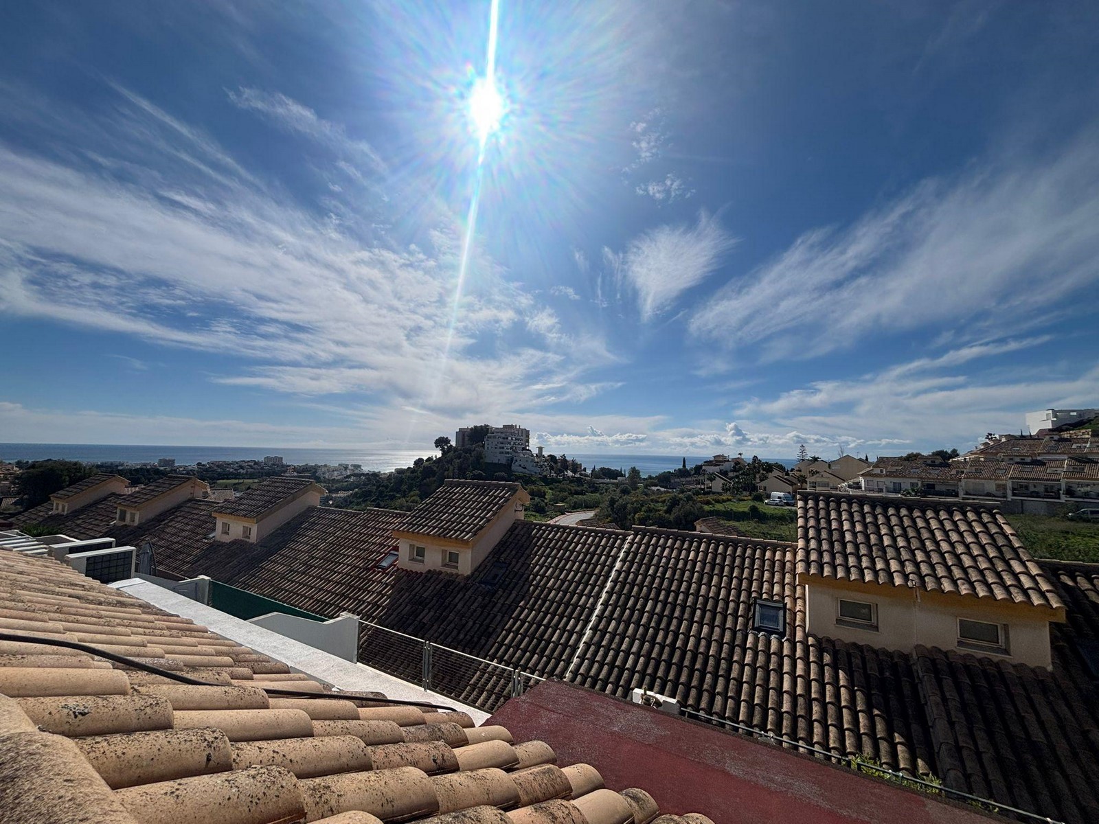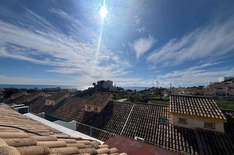 Adosado situado a dos minutos del hospital Vithas Xanit y a diez de Arroyo de la Miel. Situado en una tranquila urbanización esta vivienda se distribuye en dos plantas. En la planta baja encontramos el salón, un dormitorio, cocina, baño y patio con porche y piscina privada. Desde esta planta se accede al garaje cerrado con espacio para dos coches. En la planta alta hay otros dos dormitorios, baño y terraza. Orientación sur y aire acondicionado.